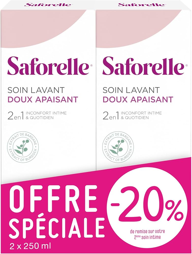 Le Soin Lavant Doux Fraîcheur Saforelle est spécialement formulé pour nettoyer en douceur la zone intime, respectant le pH physiologique de la peau.