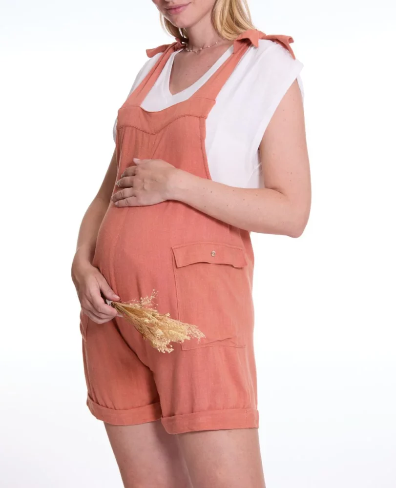Salopette short de maternité Eloise abricot – Cache Cœur