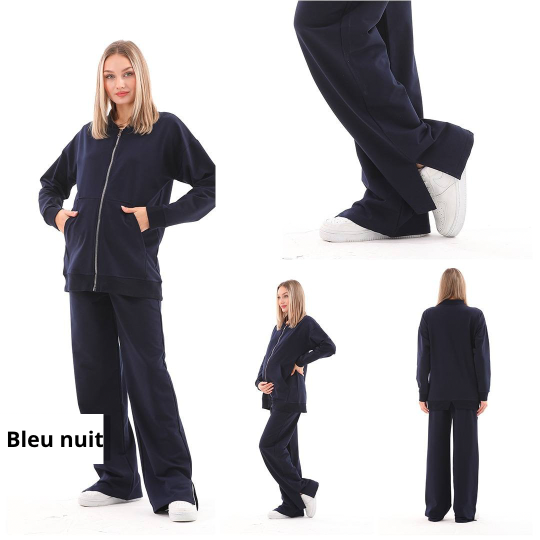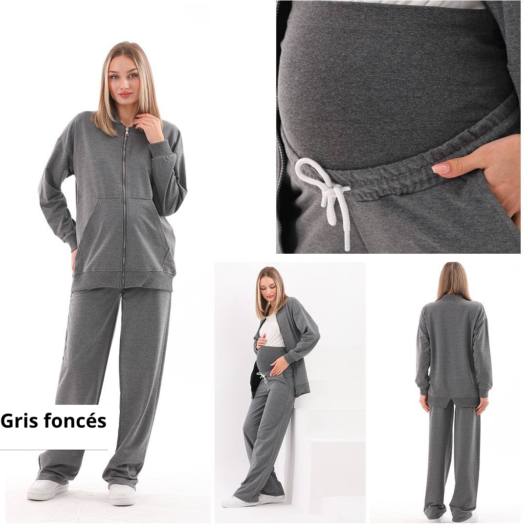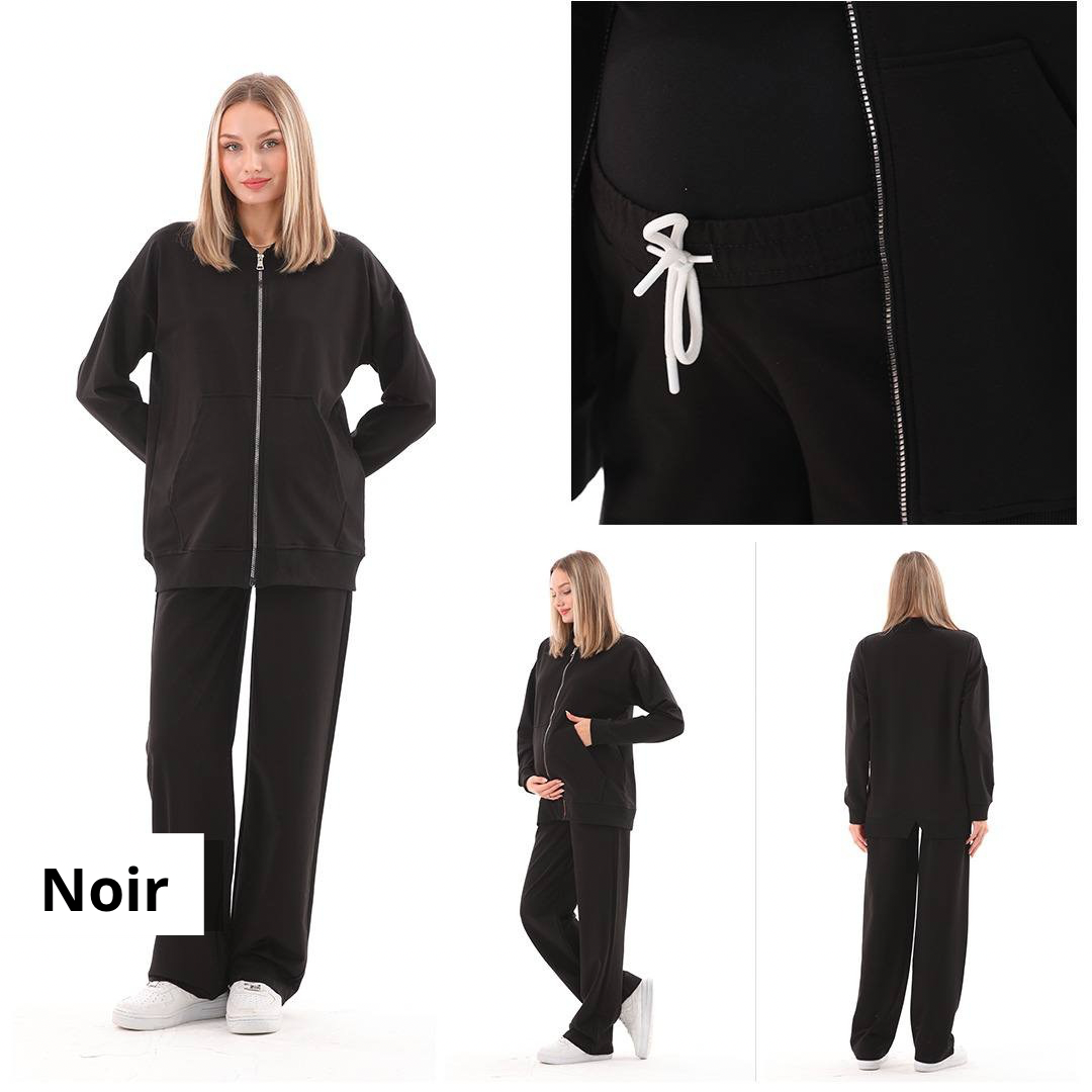 Ce survêtement est la combinaison parfaite entre style, confort et fonctionnalité. Il vous accompagne avant, pendant et après votre grossesse, pour des moments de détente en toute élégance.