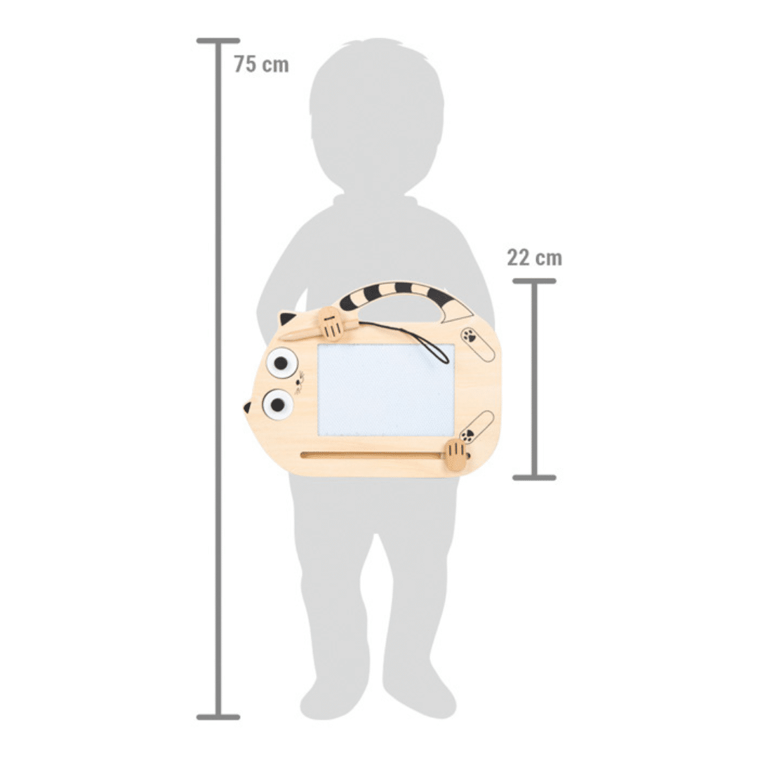 Un Design Malin et Pratique : Avec sa poignée de transport, ce tableau se porte facilement et est parfait pour les voyages et déplacements. Son crayon en bois se fixe dans les pattes du chat, évitant ainsi de le perdre.