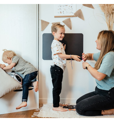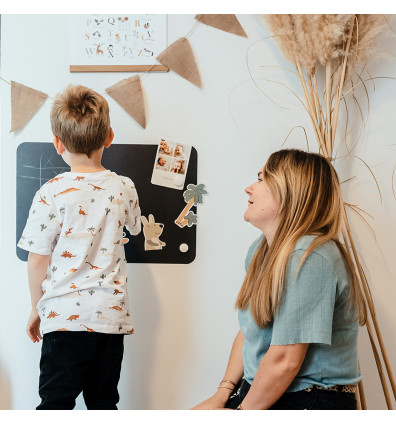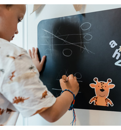 FERFLEX  Facile à installer et repositionnable, ce tableau est idéal. Il pourra servir pour jouer, organisation de la famille ou encore y accrocher dessins et photos et ainsi les changer régulièrement sans percer vos murs. Les enfants adorent jouer avec des magnets, et vous ne les assommerez plus en ouvrant la porte du frigo sans baisser les yeux pour voir que votre Mini.e est juste en dessous à jouer. Pour celles et ceux qui, comme nous, n’ont pas de frigo magnétique, plus besoin de laisser l’enfant jouer avec ses magnets sur le radiateur et risquer de l’abîmer en le brûlant…