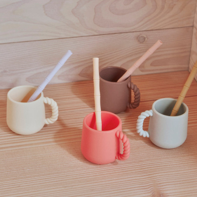 A taaaaaaaable ! C’est l’heure du petit-déjeuner et quoi de mieux que de profiter de son jus de fruit ou de son cacao dans ces 2 jolies tasses en silicone de OYOY ? 🙂