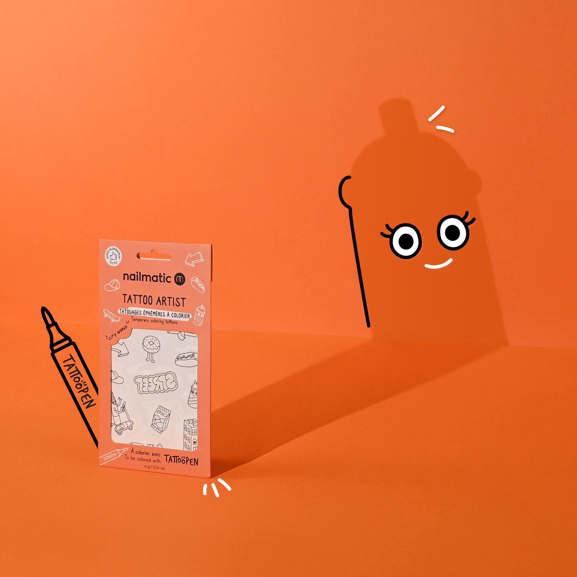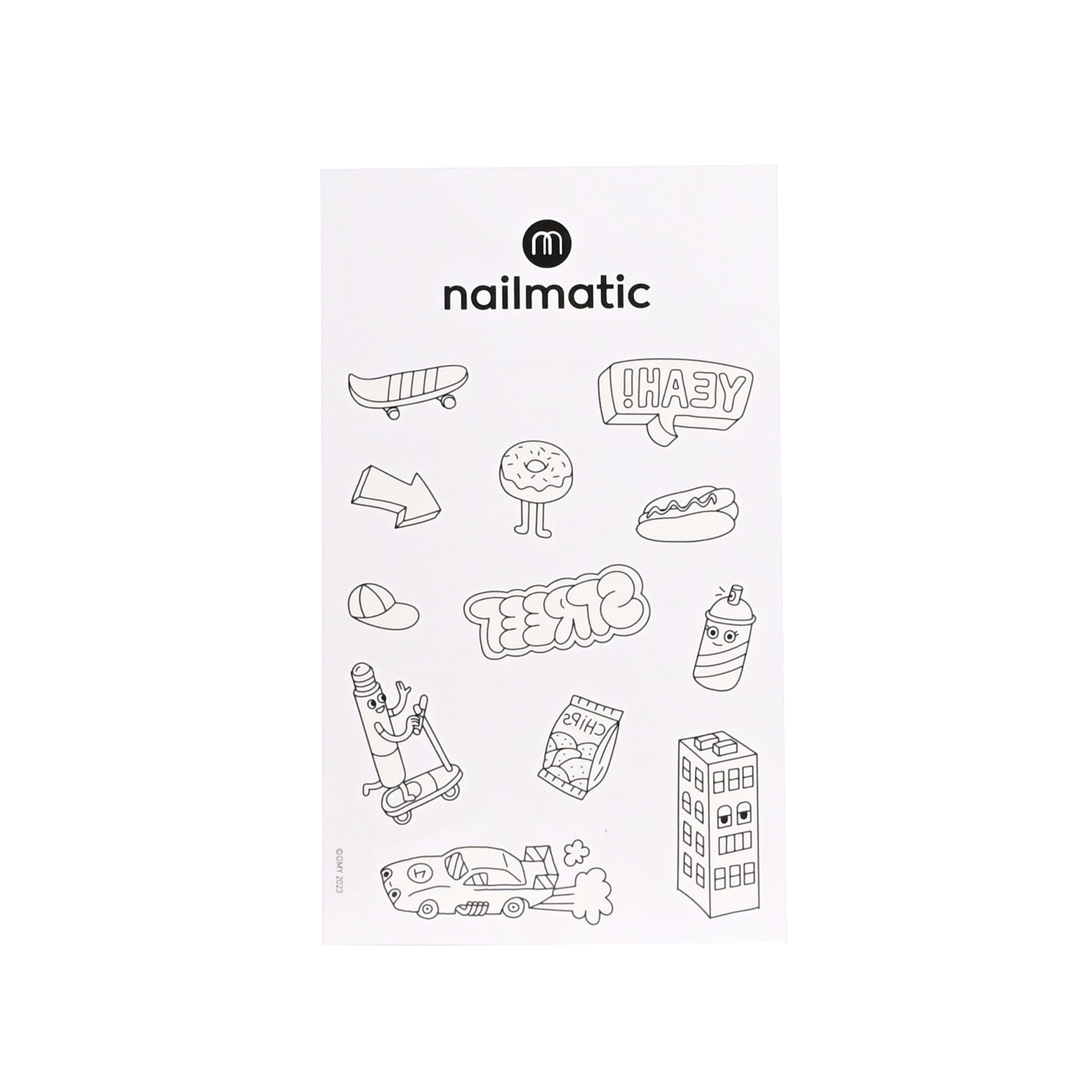 NAILMATIC Une planche de 12 tatouages à colorier avec votre Tattoopen. On colorie, on rince et on recommence. Chouette activité d’anniversaire. et si vous n’avez pas de Tattoopen ? pas grave ça fera de jolis tatouages éphémères quand même.