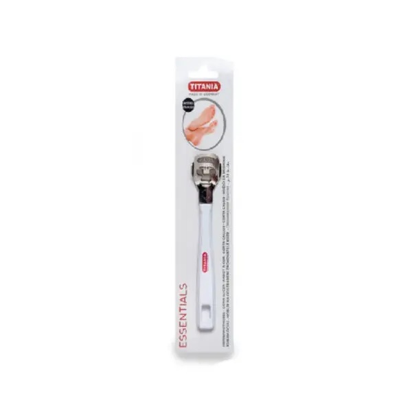 TITANIA Rabot à Cors est spécialement conçu pour enlever les cors, durillons et callosités afin de retrouver des pieds doux et confortables.