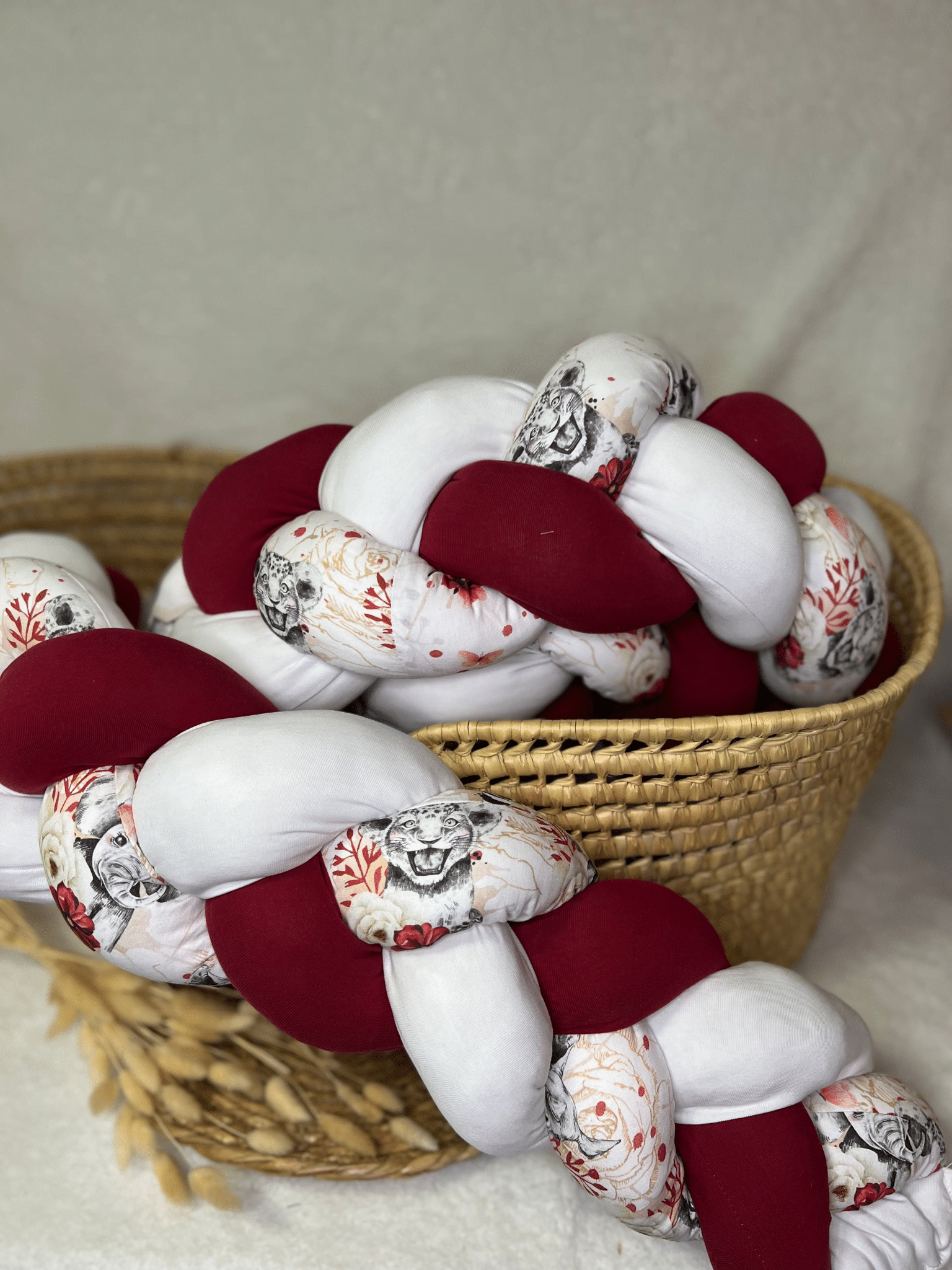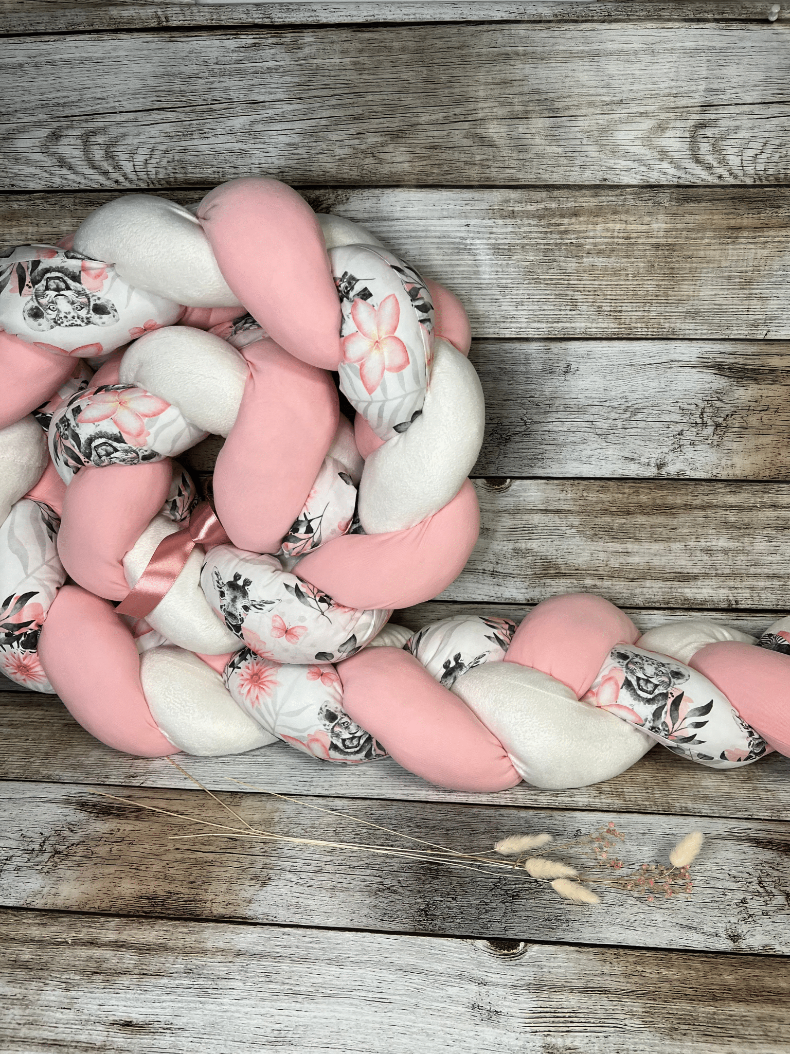 Chaque tresse est cousue avec du coton doux et rembourrée de ouate moelleuse. Résistante et confortable, elle accompagne bébé longtemps.