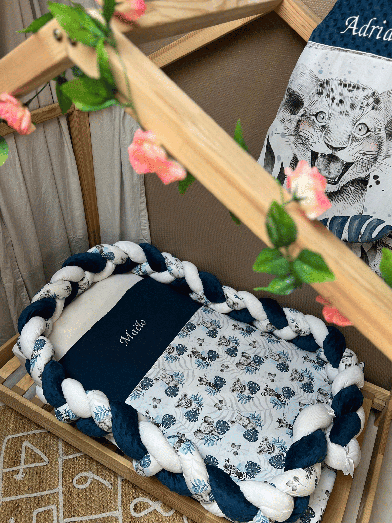 Tour de lit tressé Savane – à personnaliser 💛 À partir de 80,00 € – Fait main avec amour Offrez à bébé un cocon doux, coloré et sécurisé. Ce tour de lit tressé, réalisé à la main, s’adapte parfaitement à son lit pour un sommeil paisible… et stylé ! 🌿 Personnalisation facileComposez votre tour de lit avec vos couleurs préférées : imprimés savane, unis ou mixtes. Créez un univers qui vous ressemble. 🧵 Fait main avec soinChaque tresse est cousue avec du coton doux et rembourrée de ouate moelleuse. Résistante et confortable, elle accompagne bébé longtemps. 📏 Adaptée à votre…