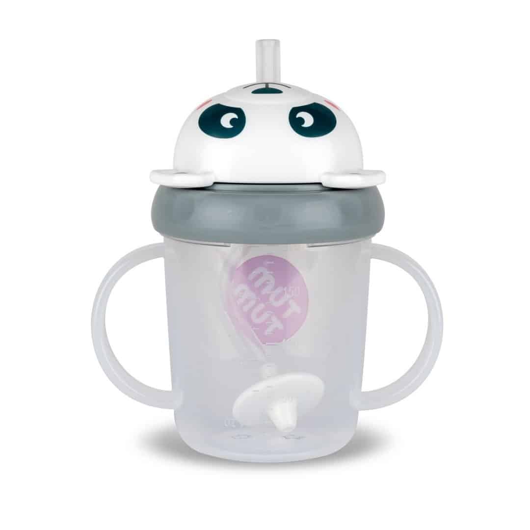 Avec son couvercle rabattable anti fuite et sa paille lestée la tasse Panda peut s’utiliser dans tous les sens. La tasse est graduée, elle passe au lave vaisselle. Adaptée au petite mains !