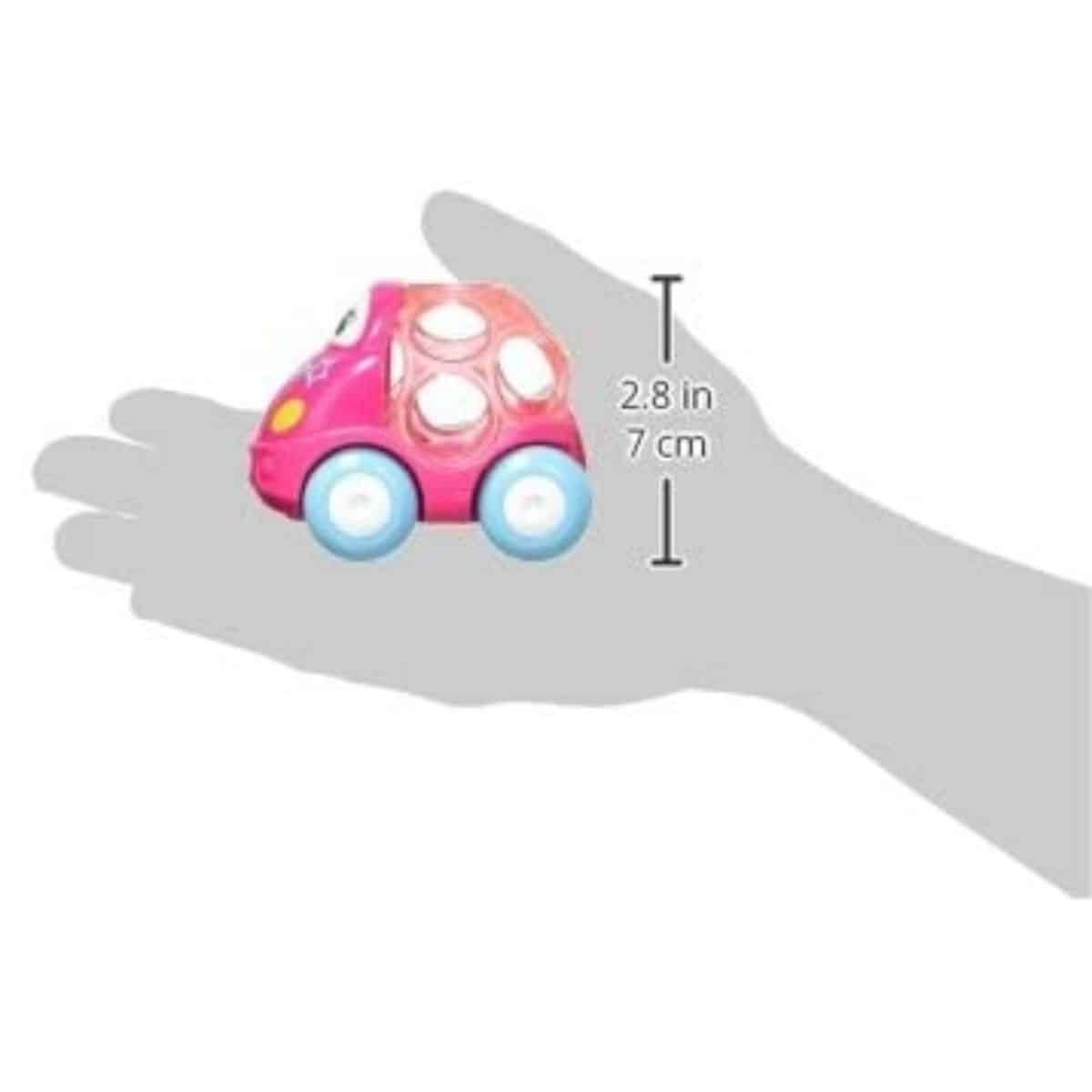 Ce véhicule de course comporte des trous géométriques Oball caractéristiques qui sont plus amusants et plus faciles à attraper, même pour les doigts les plus petits et les moins expérimentés.