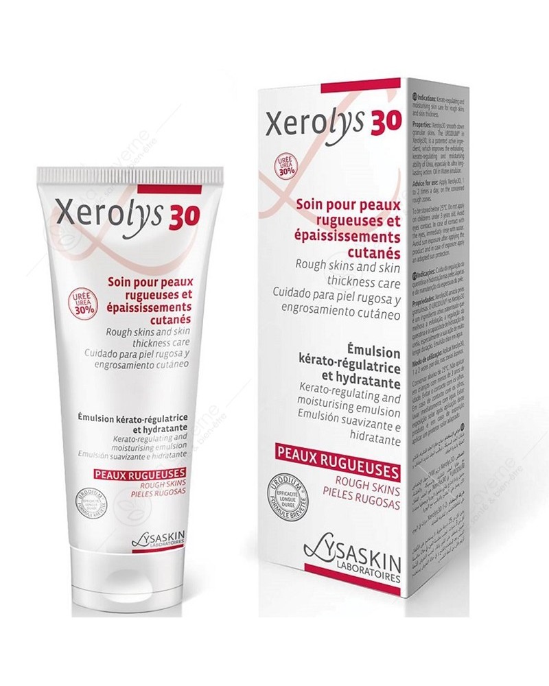 Le XEROLYS 30 est un soin dermatologique spécialement conçu pour traiter les zones épaissies et très sèches de la peau, comme les coudes, genoux, talons, pieds ou mains.